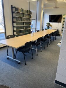 Our study room has 7 seats and can be reserved by emailing the Mathematics Library service desk (607-255-5076). The room is equipped with 2 whiteboards & one plug in monitor.